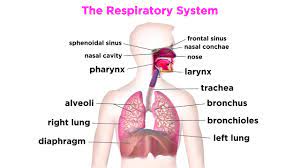 Respiratory SystemThe respiratory system is comprised of the lungs and the airways. It works together with the cardiovascular system to provide oxygen to the body and to remove carbon dioxide from the blood. External respiration, or breathing, is the movement of air into and out of the lungs through the airways. Inspiration (breathing in) pulls air into the lungs and allows the oxygen in the air to move into the tiny blood vessels (capillaries) found in the lungs. At the same time, carbon dioxide moves out of the blood vessels in the lung and into the air in the lungs. Expiration (exhalation) moves this carbon dioxide-rich air out of the lungs.Internal respiration is the exchange of oxygen and carbon dioxide that takes place between the blood and metabolizing cells throughout the body.Primary function: Absorbs oxygen from the air and removes carbon dioxide from the body.Key organs: Mouth, nose, nostrils, sinuses, pharynx, cilia, trachea, larynx, diaphragm, lungs, bronchi, alveoli.