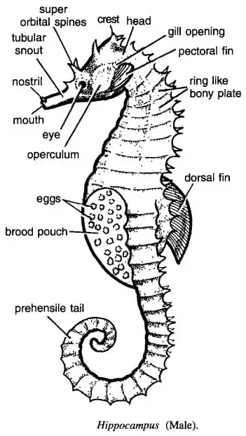 Habitat: It is a marine fish found all over the world in tropical and temperate seas, particularly in Indian and Atlantic seas. It is commonly called sea horse.