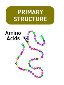 The Primary structure of proteins is the exact ordering of amino acids forming their chains.