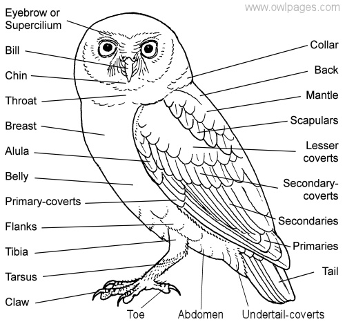 (ii) Head is rounded and bears two forwardly directed eyes, sharp curved beak and well developed
